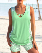 - Design: Two-piece set including a tank top and high-waist shorts.