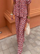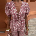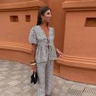 The Cecilia™ Puff Sleeve Lace-Up Top and Elegant Pant Set is a stunning ensemble designed to elevate your wardrobe with both style and comfort. Here's why it's a must-have addition: