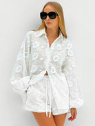 The Nina set brings the perfect balance of comfort and style for both spring and summer. Crafted with refined cotton lace, this versatile ensemble keeps you feeling fresh and looking effortlessly chic, whether you're enjoying a springtime stroll or a sunny summer day. With its separate pieces, Nina offers endless outfit possibilities, making it a staple for any wardrobe. Elevate your seasonal style with a set that blends luxury and comfort in one.