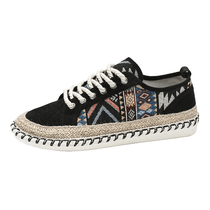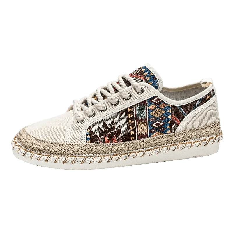 Crafted with artisan-woven fabric and a jute-wrapped midsole, these sneakers not only look fantastic—they feel amazing too. Perfect for casual strolls or making a statement on your next adventure, the Aztec Odyssey Sneakers offer a versatile and comfortable fit for any occasion.